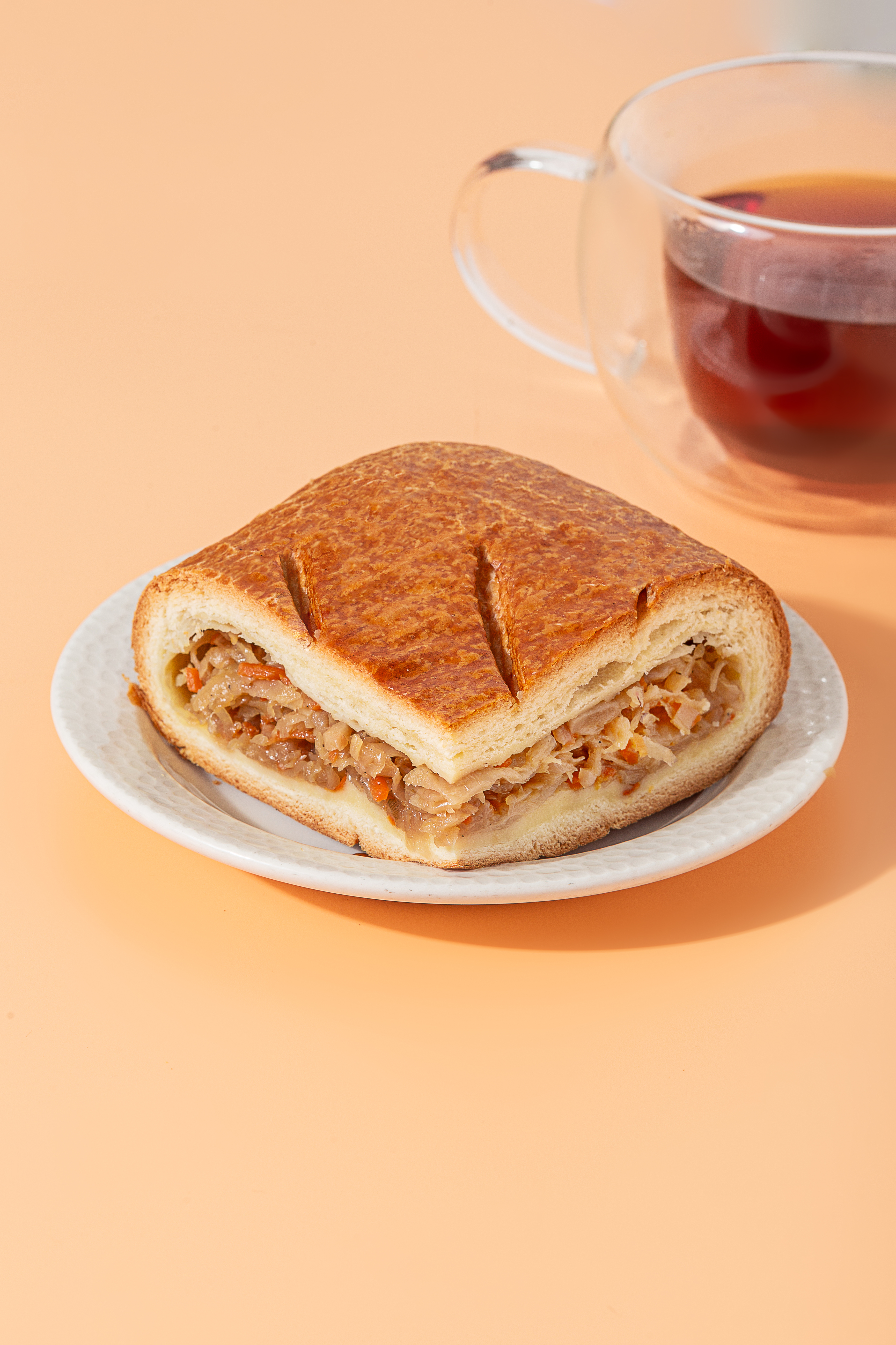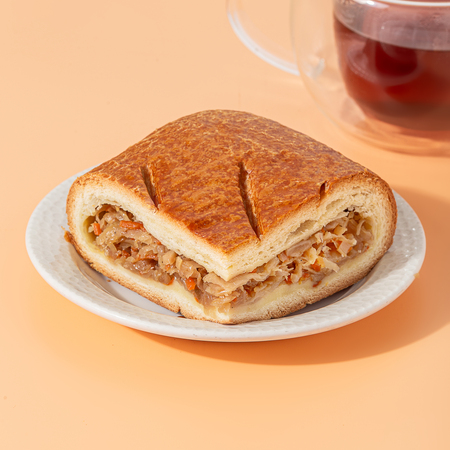 - Капуста белокочанная свежая, мука пшеничная хлебопекарная высшего сорта, лук репчатый свежий, морковь столовая свежая, маргарин, вода, масло растительное, продукт яичный жидкий меланж, дрожжи хлебопекарные прессованные, соль пищевая, сыворотка сухая молочная, укроп свежий, комплексная пищевая добавка разрыхлитель, комплексная пищевая добавка улучшитель хлебопекарный, перец черный.